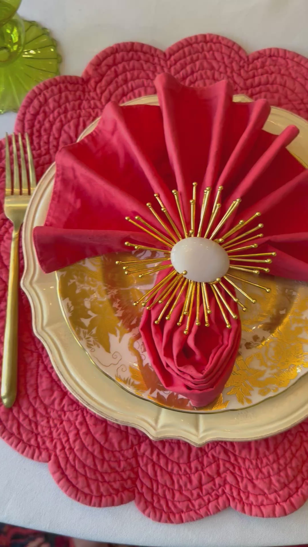 The handcrafted Sunburst Napkin Ring is a celestial burst of energy for your dining table. Featuring stunning quartz replica center stones, theses beauties are the perfect pop of table jewelry for any celebration.